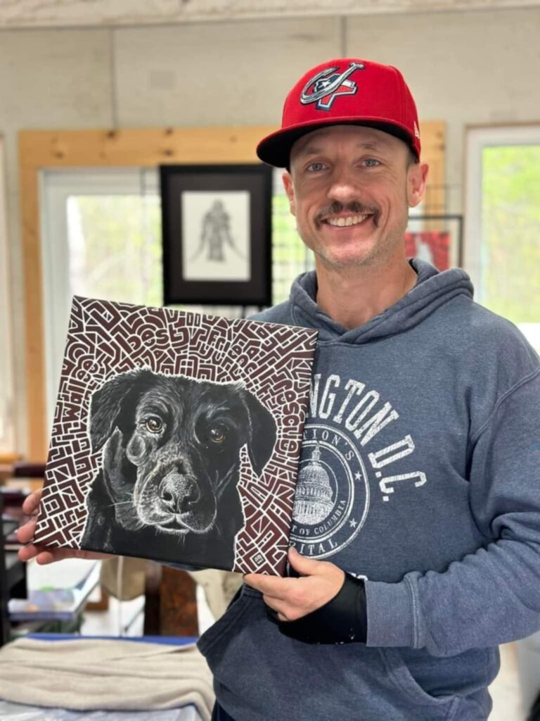 The timing was devastating. “I owned the gym with my wife,” he explains. “Our marriage kind of fell apart at the same time as COVID. When everything fell through—when it was all over—I just needed a new beginning. Something different. That’s why I decided I was going to make a business out of art. That’s what brought me to where I am today.”